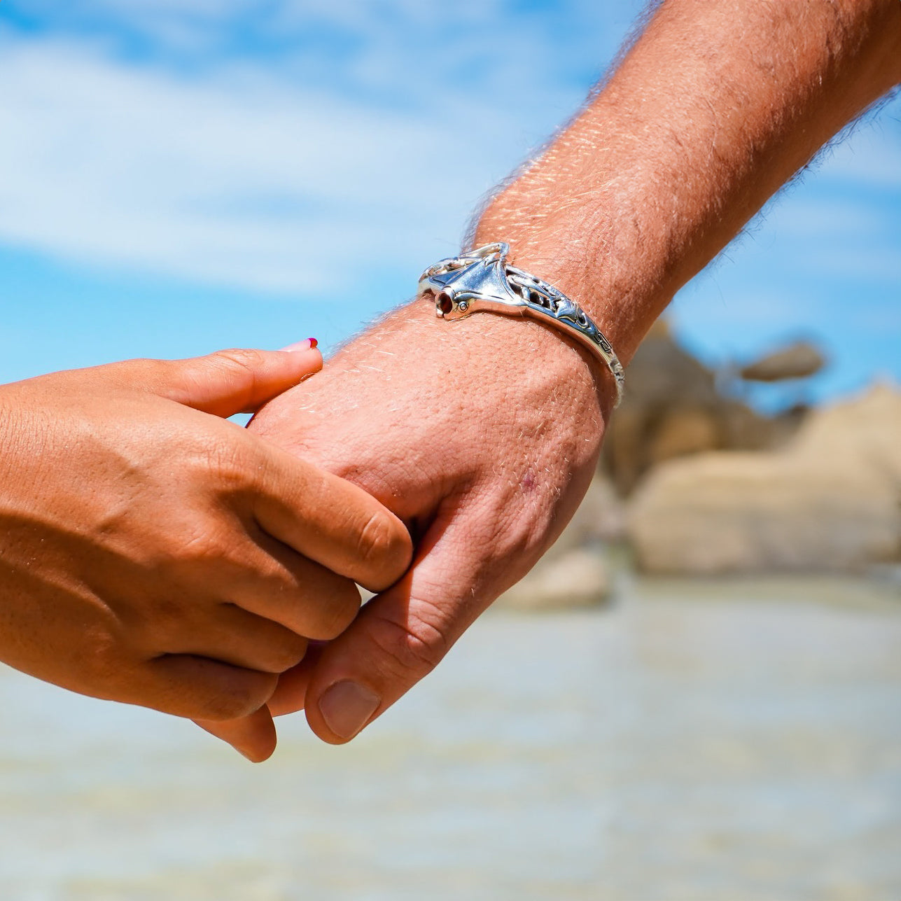 Dive into elegance with the Manta Rays and Sharks Sterling Silver Chain Bracelet, a stunning piece that combines the grace of manta rays with the power of sharks. Crafted from premium sterling silver, this bracelet features beautifully detailed charms of manta rays and sharks, symbolizing the harmony and diversity of the ocean. Each charm is meticulously designed to capture the fluid movements and distinctive characteristics of these majestic creatures.