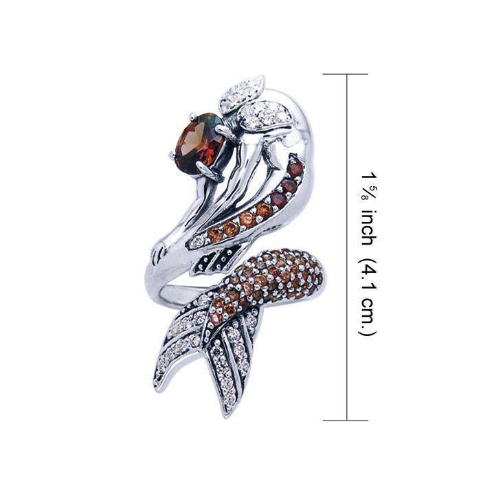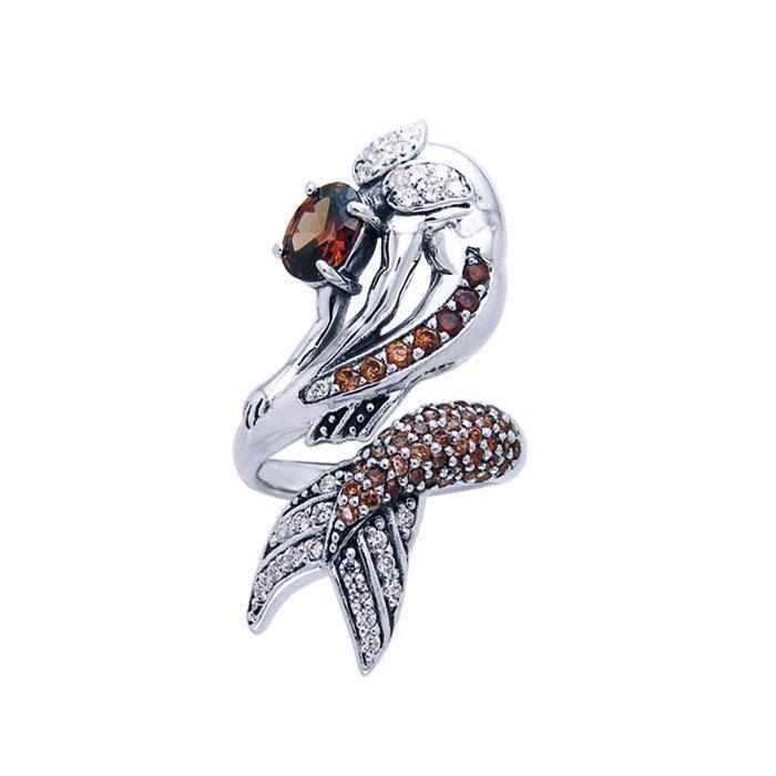 Amazed with the mermaid s beauty ~ Dali-inspired fine Sterling Silver Ring accented with Champagne and White diamonds TRI763