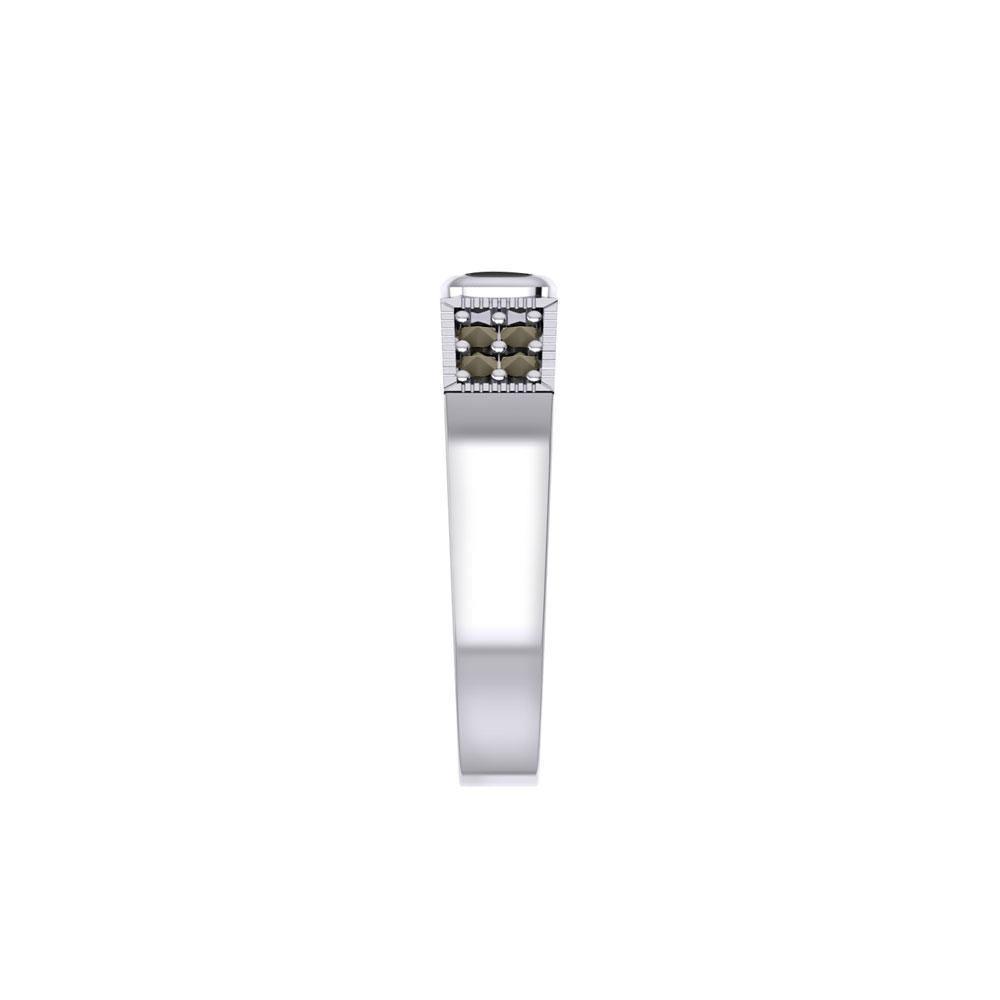 Modern Band Ring with Inlay Stone and Marcasite TRI1977