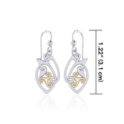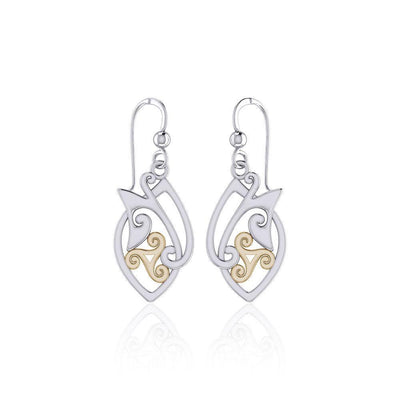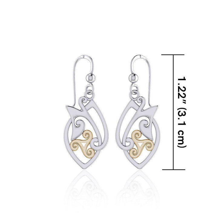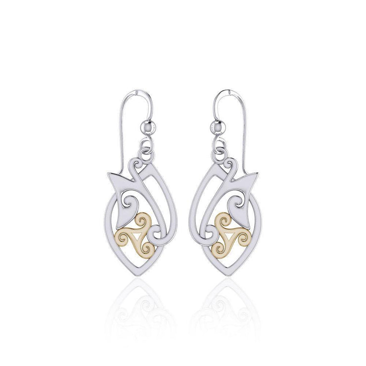 Modern Celtic Triskele Silver and 14K Gold Accent Earrings TEV2071