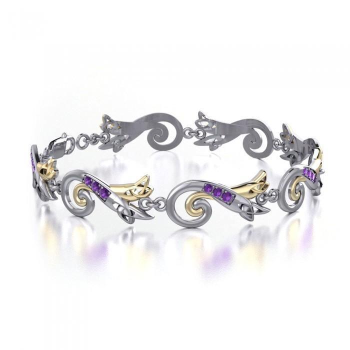 A quest to life’s never-ending journey ~ Celtic Triquetra Sterling Silver with 14k Gold Accent Bracelet and Gemstone MBL123