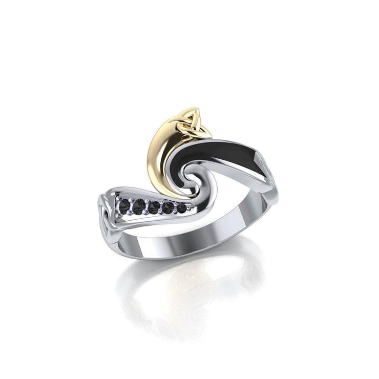 Endless and Modern ~ Celtic Triskele Silver & 14K Gold Accent Ring MRI636