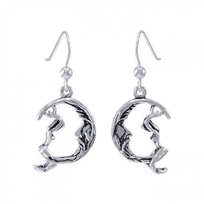 Goddesses swing from these crescent Man-in-the-Moon earrings in a sterling silver celebration of divine feminine sexuality.