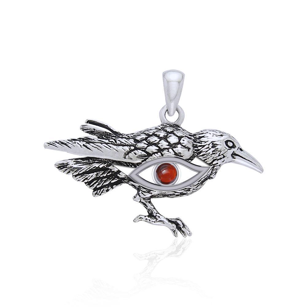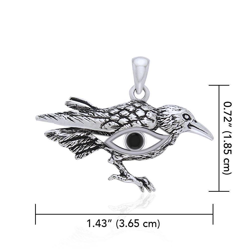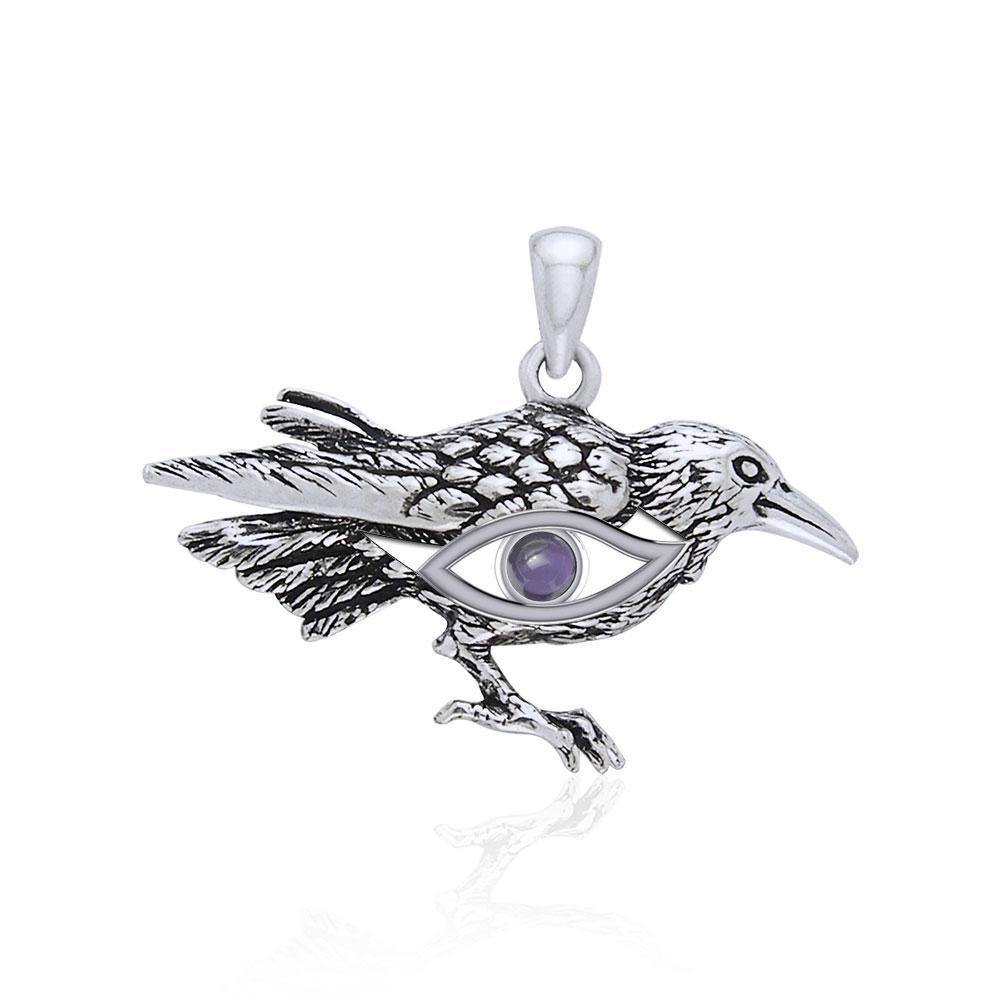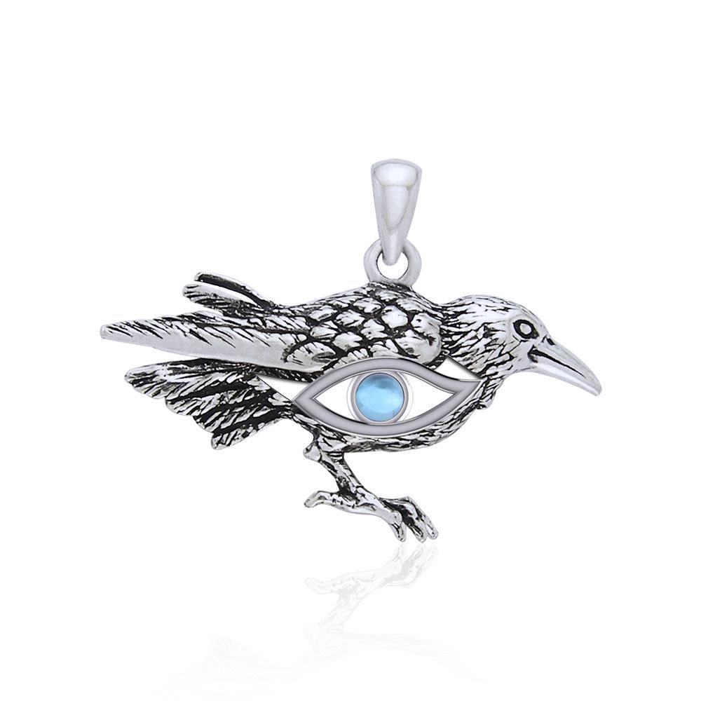 Mythical Raven with Gemstone Eye of Wisdom Sterling Silver Pendant TPD5254