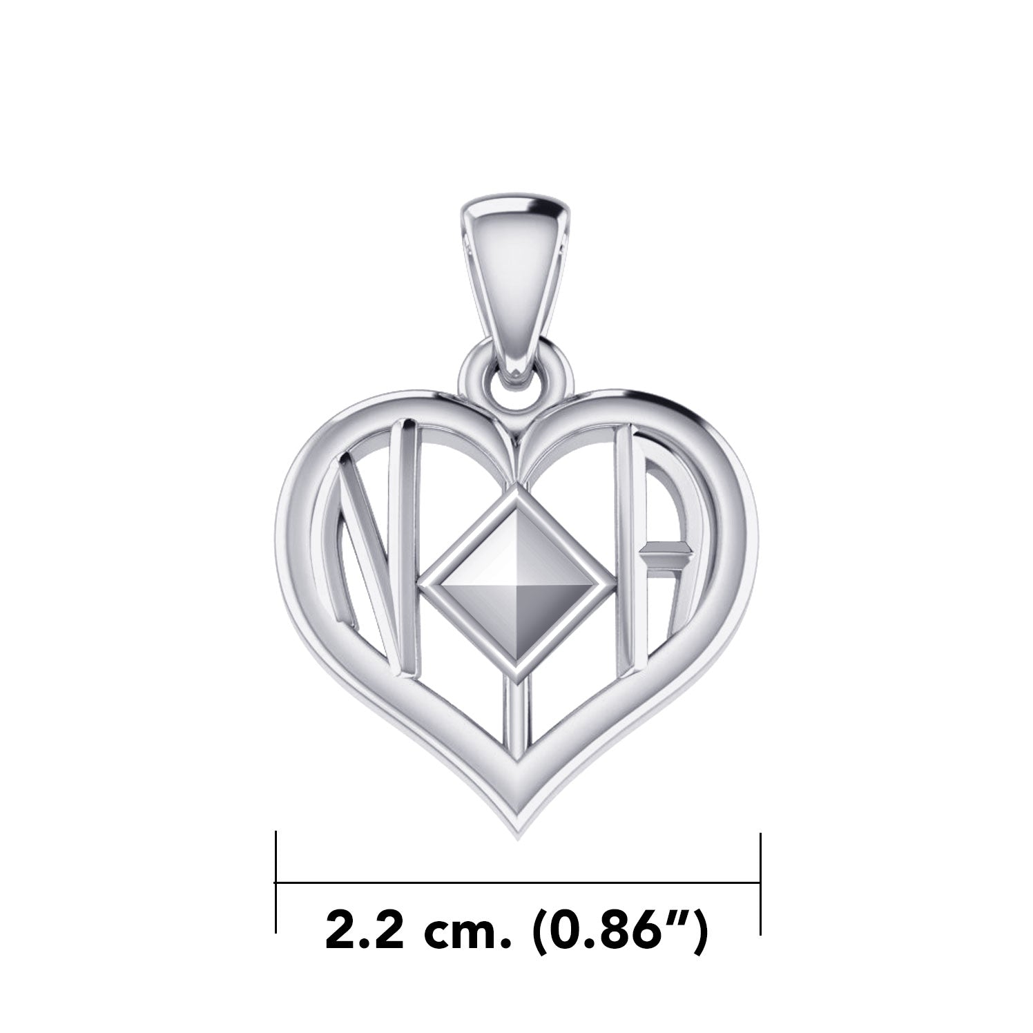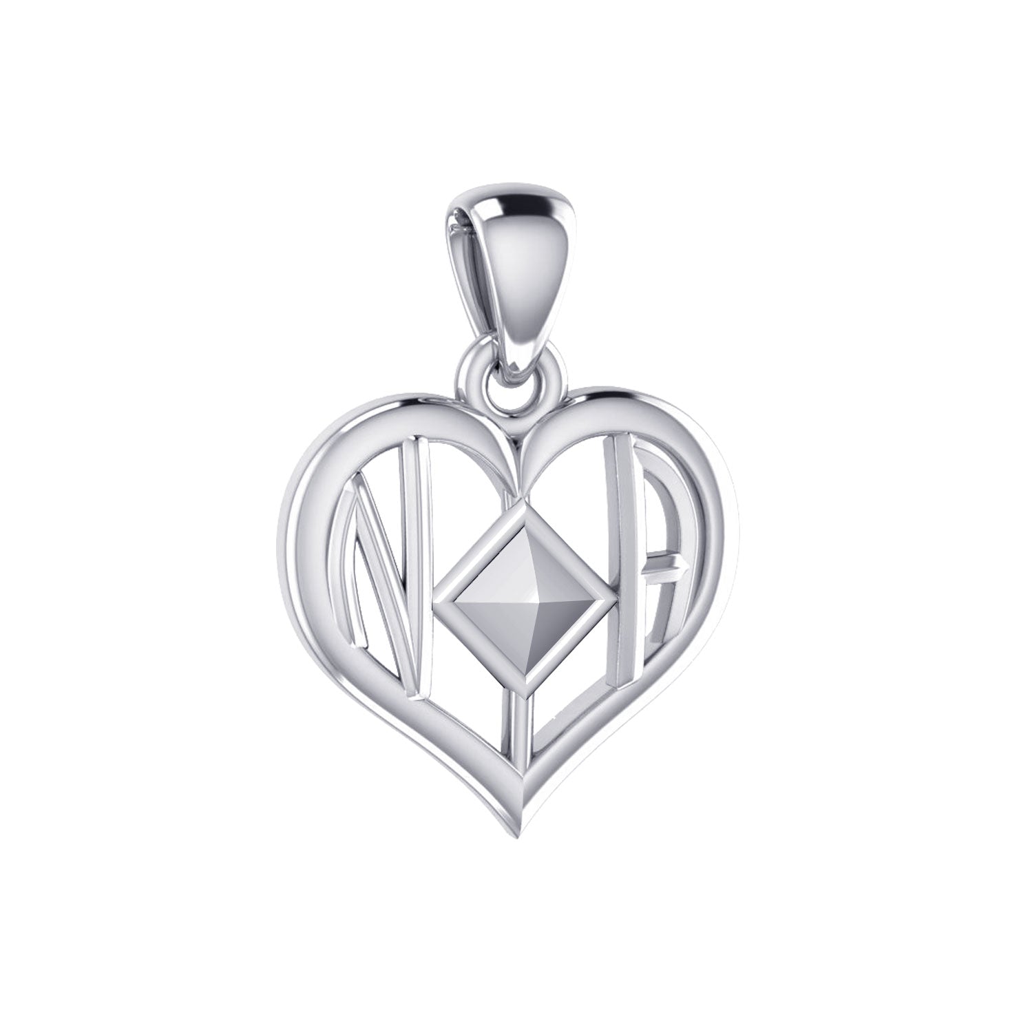 This sterling silver pendant features the iconic NA recovery symbol combined with a heart motif, making it a meaningful and significant piece for those in the recovery community.