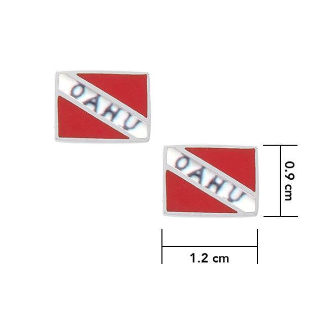 Oahu Island Dive Flag and Dive Equipment Silver Post Earrings TE2772