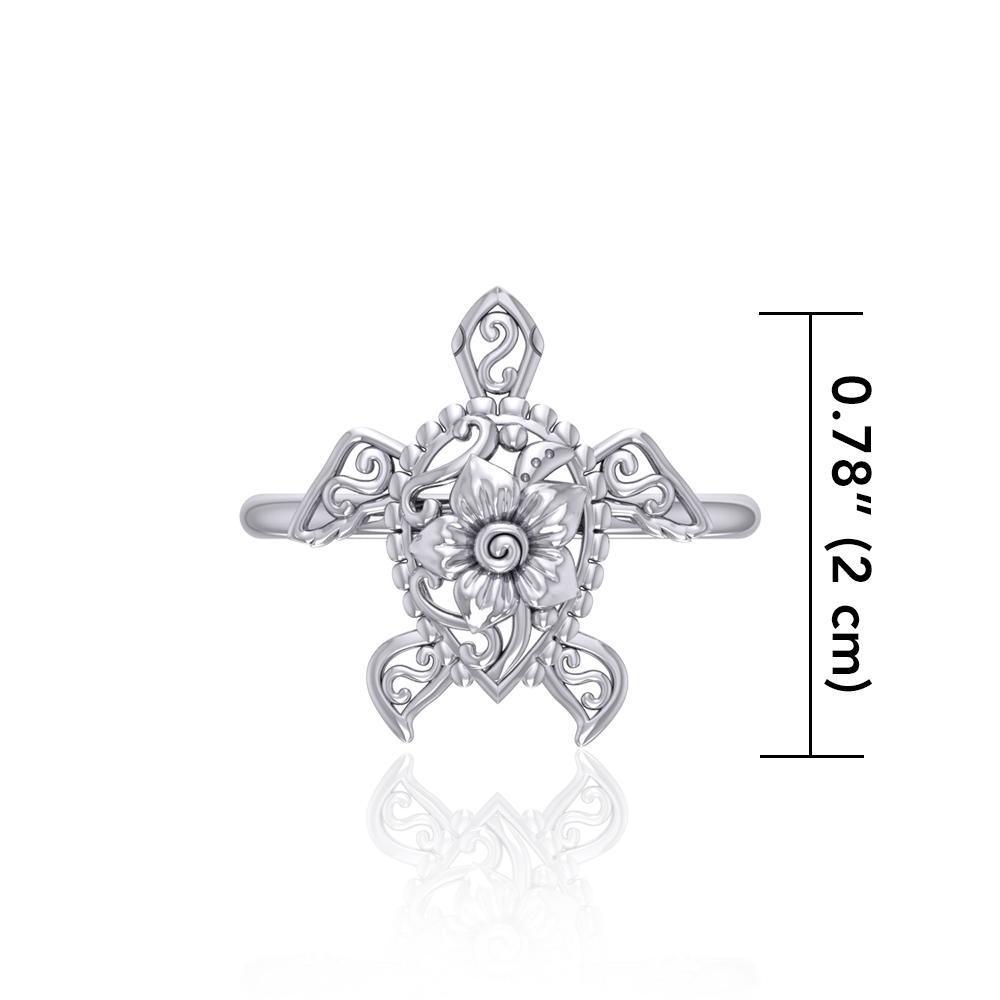 One meaningful step at a time Sterling Silver Sea Turtle Floral Filigree Ring Jewelry TRI1791
