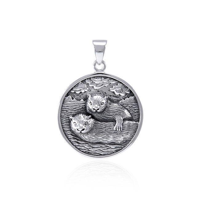Sea Otters Medallion Silver Pendant TPD4617