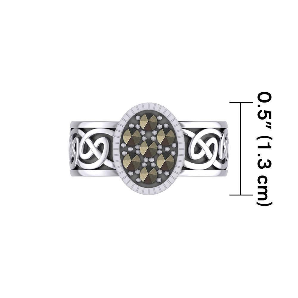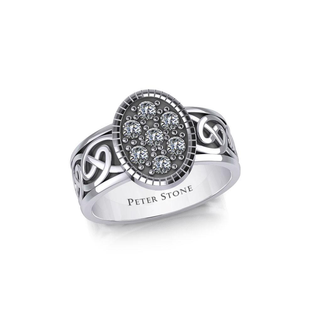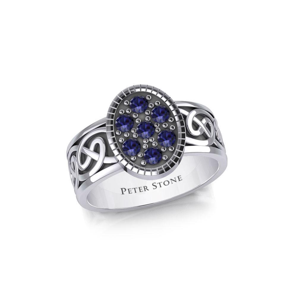 This Oval Celtic Ring with Gemstones by Peter Stone in striking sterling silver is a powerful reminder of the richness of the eternal.