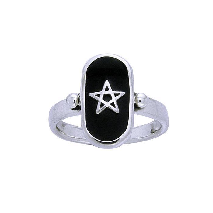 Simple and elegant, this slender sterling silver ring is adorned with an The Star, the Pagan symbol representing elemental and spiritual balance .