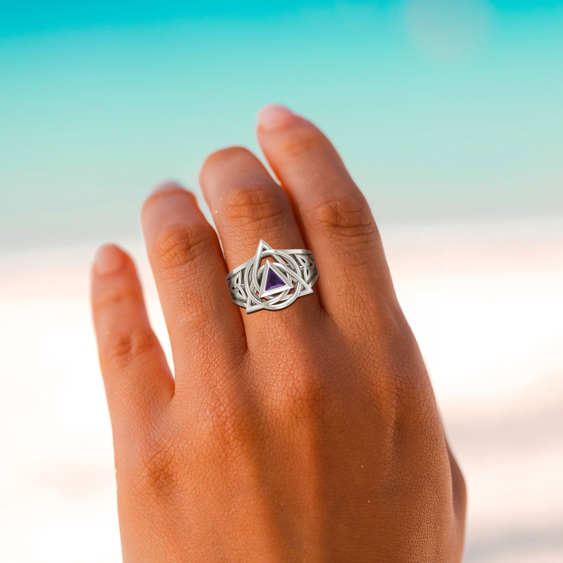 Peter Stone Celtic triquetra with AA Recovery Gemstone Sterling Silver Ring TRI2550