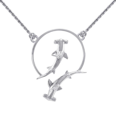 Double Hammerhead Shark Sterling Silver Necklace TNC434