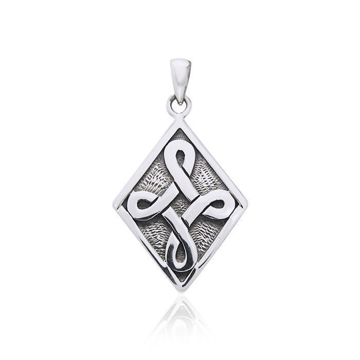 Enclosed within a diamond - a symbol of creativity - this quaternary knot embraces concepts of four in the Celtic world.
