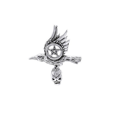 Raven Pentacle Skull Sterling Silver Pendant TPD3958