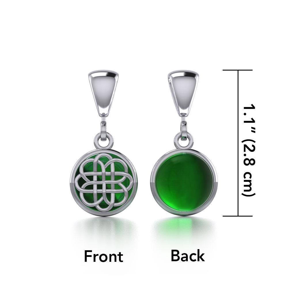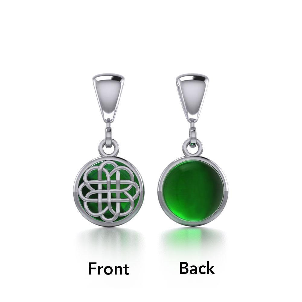 This elegant Celtic knotwork pendant features double the value and beauty with an intricate knotwork design on one side that allows the sparkle of the gem on the reverse to shine through. Makes an elegant gift for yourself or someone special!