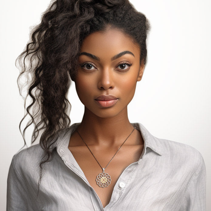 This elegant Rose Window with NA Symbol Sterling Silver with 14K Gold Vermeil Accent Pendant is a powerful emblem of recovery, strength, and hope. Inspired by the intricate beauty of Gothic cathedral rose windows, the sterling silver outer design represents unity and transformation. At its center, the Narcotics Anonymous (NA) symbol, featuring a diamond inside a circle, is beautifully crafted in 14K gold vermeil, signifying the principles of freedom, service, and growth.