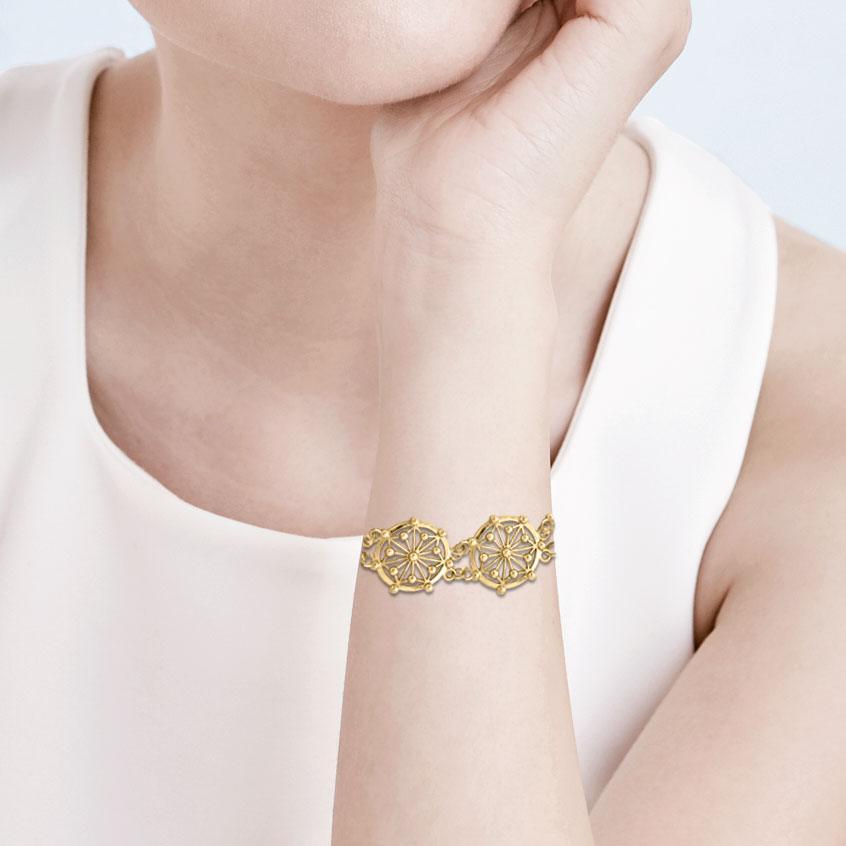 Round Tetragram Energy Symbol 14K Gold Vermeil Plate on Sterling Silver Medallion Bracelet VBL268