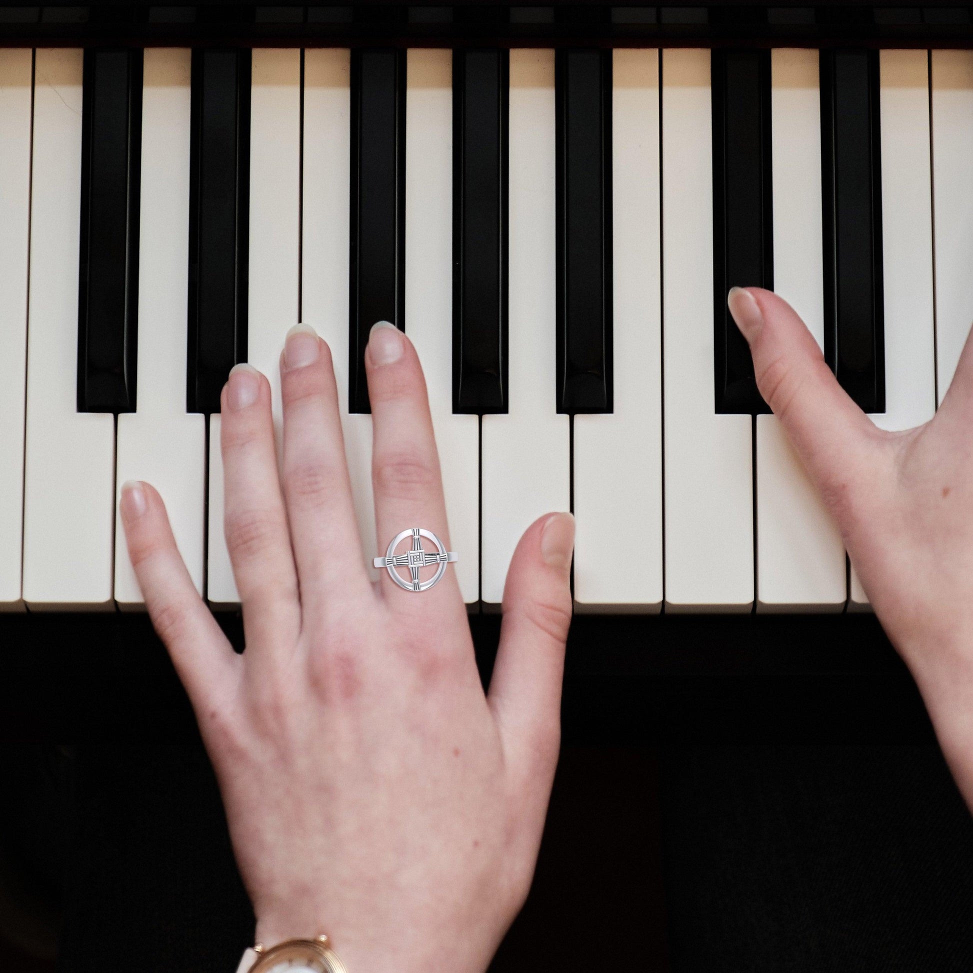 The woven cross design is delicate and lovely to behold, but it carries a far stronger meaning in St. Brigid's works and beliefs. She is one of Ireland's patron saints who devoted her life as a nun to caring for the poor and the sick. St. Brigid spent her entire life in the service of God and the needy. Her dedication and selflessness are legendary and beautiful. Her pure spirit lives on to the present day declared in this ring with faith and compassion.