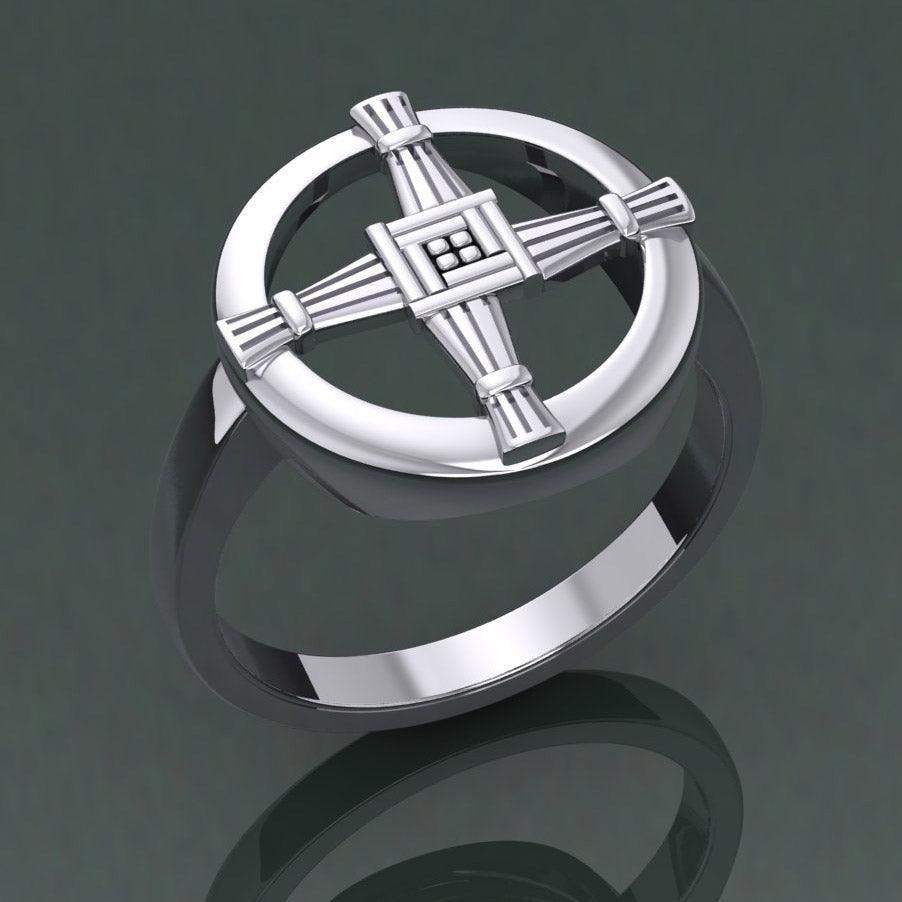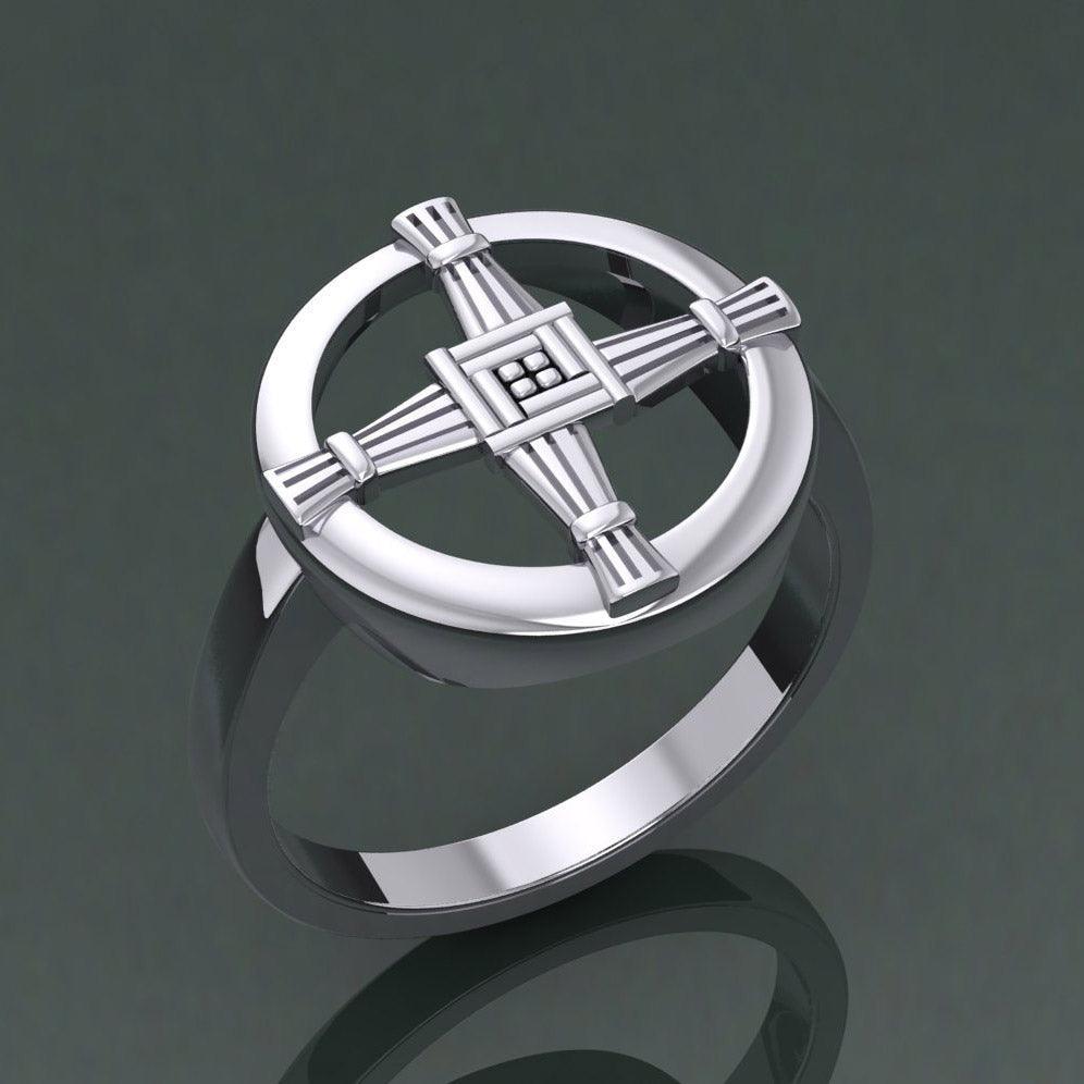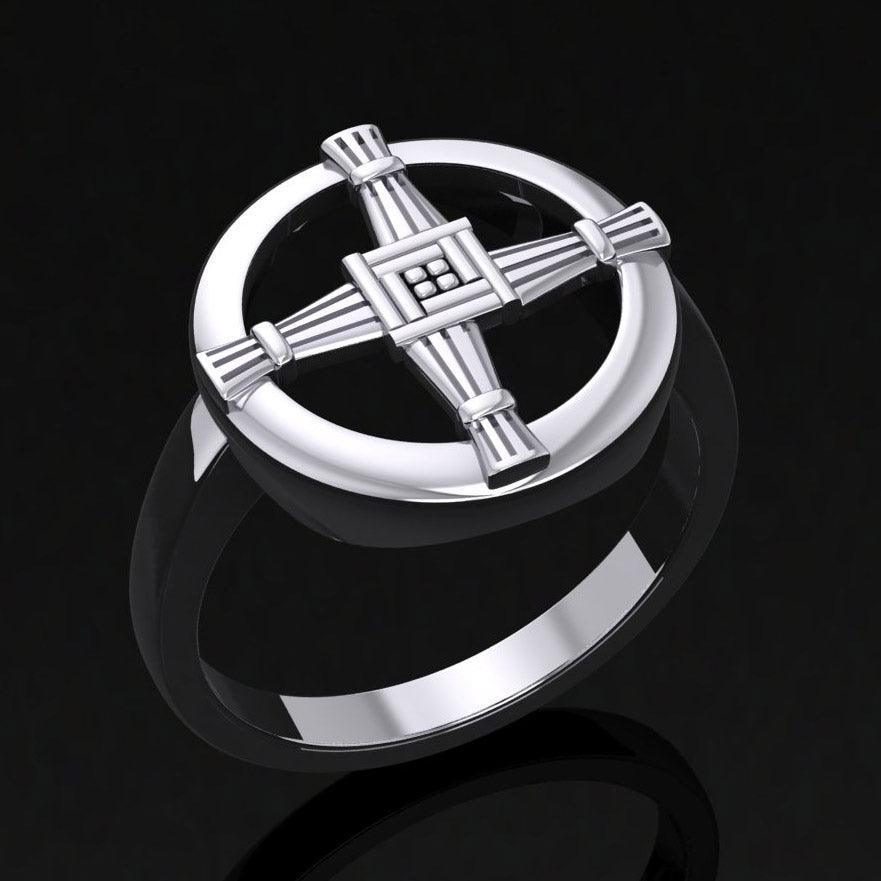 Relive the mythical significance of St. Brigid's independent spirit, determination, and her dedication to God in this stunning sterling silver ring of Peter Stone Jewelry. St. Brigid's cross consists of rushes woven into a Swastika-like ornament, reminiscent of a number of designs found in Celtic art both ancient and modern.