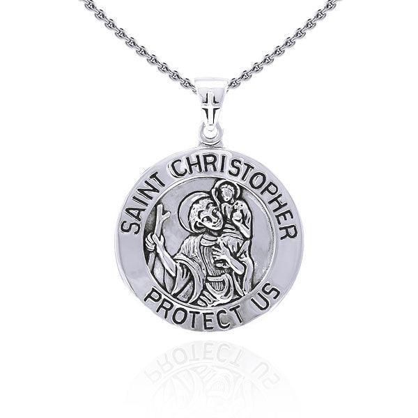 This sterling silver St. Christopher Pendant is the perfect adornment for anyone who desires a closer connection with St. Christopher to channel his heavenly strength and devotion.