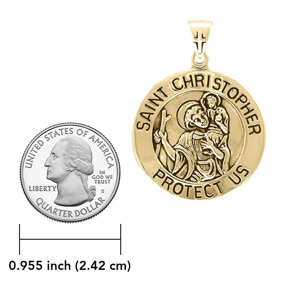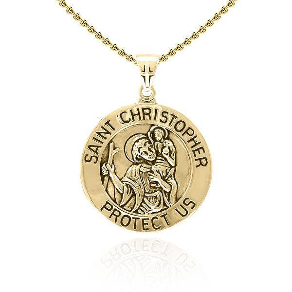This gold-plated sterling silver St. Christopher Pendant is the perfect adornment for anyone who desires a closer connection with St. Christopher to channel his heavenly strength and devotion.
