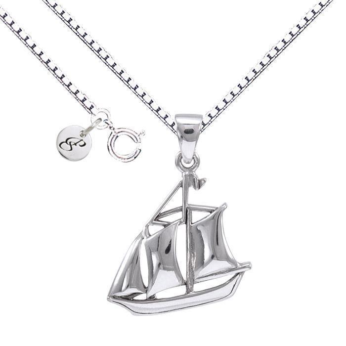 Sail as Far as the Majestic Schooner ~ Sterling Silver Jewelry Necklace TSE692