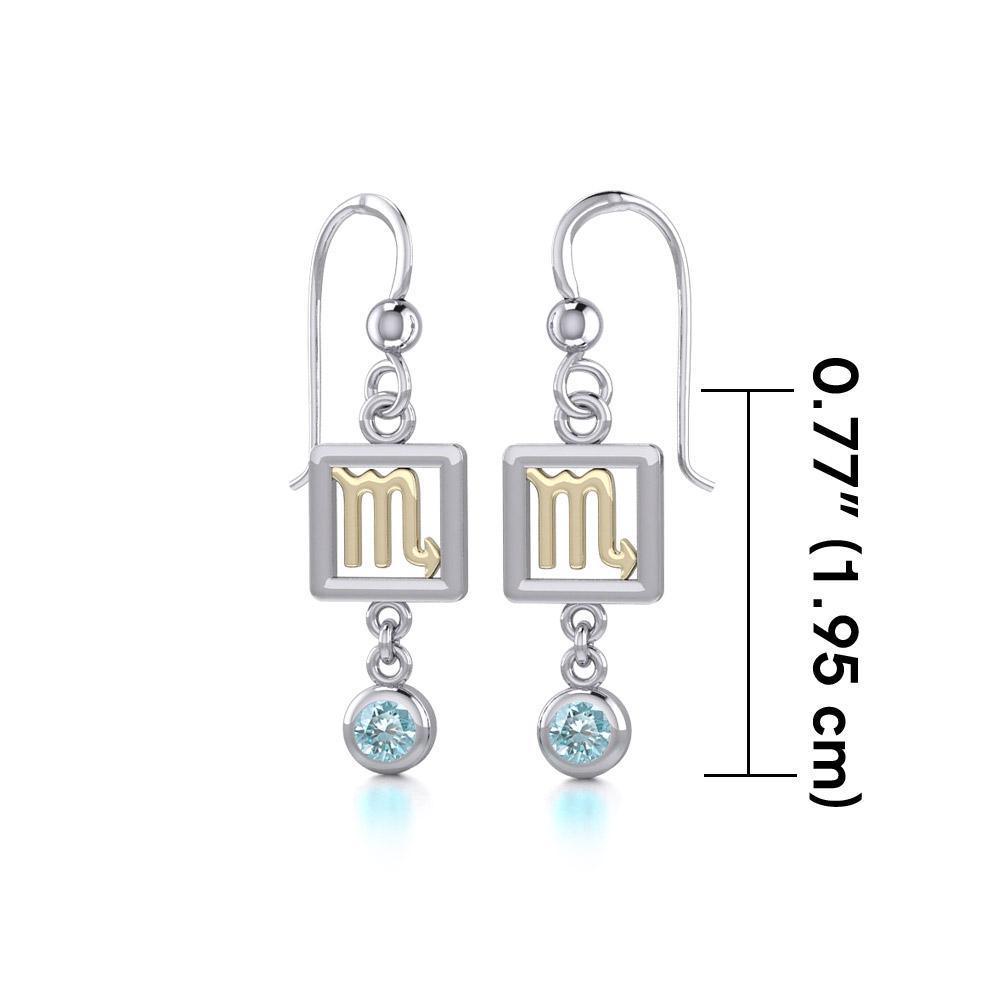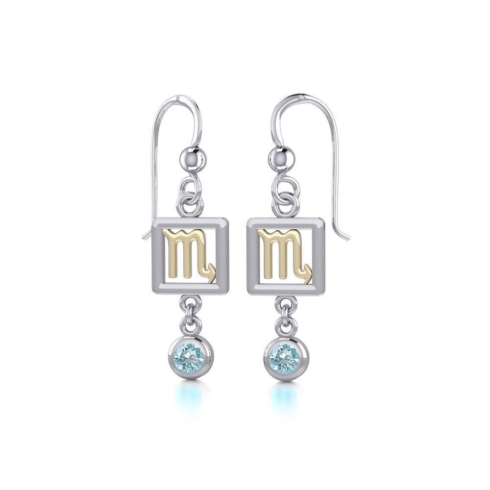 Scorpio Zodiac Sign Silver and 14K Gold Accent Earrings with Genuine Blue Topaz MER1776