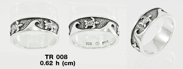 The story of sea turtle in the big waves Sterling Silver Ring TR008