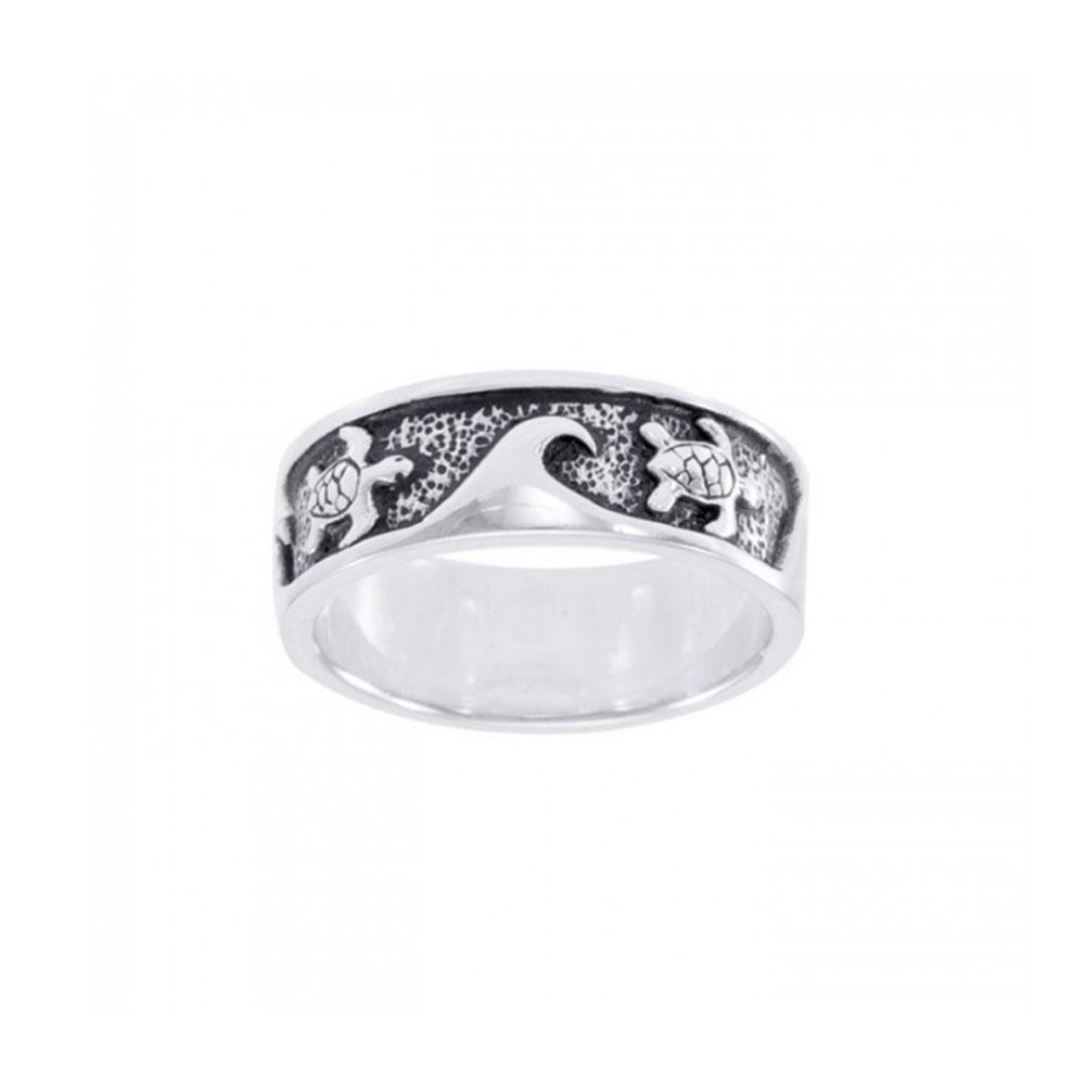 Find our eternity in each moment evidently showcased in the Sea Turtle and Waves Sterling Silver Ring.