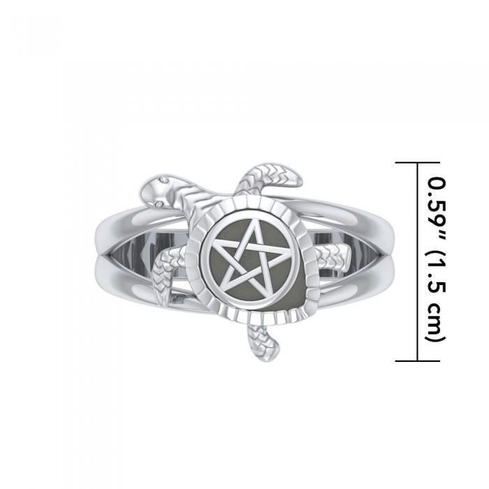 Sea Turtle with Pentacle Silver Ring TRI1783