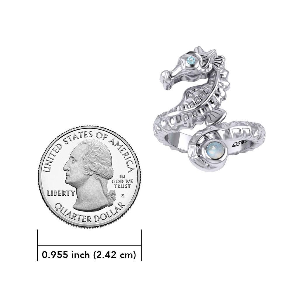 Seahorse with Gemstone Silver Wrap Ring TRI2443