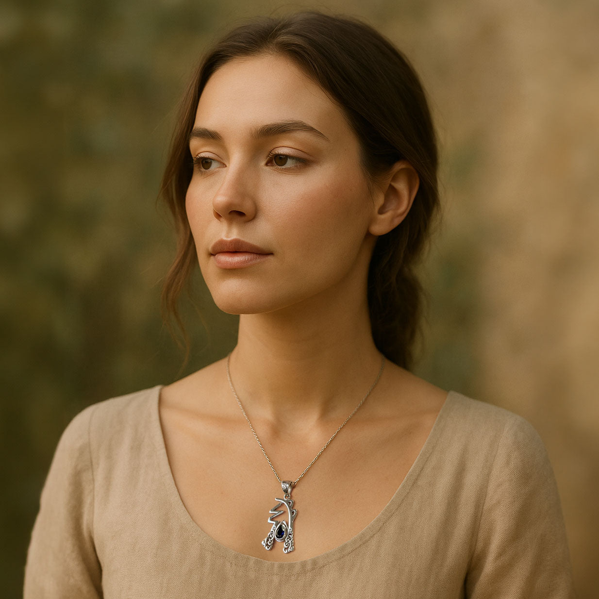 At the heart of the pendant lies a beautiful pear-shaped gemstone, adding a touch of elegance and energy to the design. The intricate Celtic-inspired detailing and small accent stones enhance its beauty, symbolizing interconnectedness and strength. The polished silver finish ensures durability and a radiant shine.