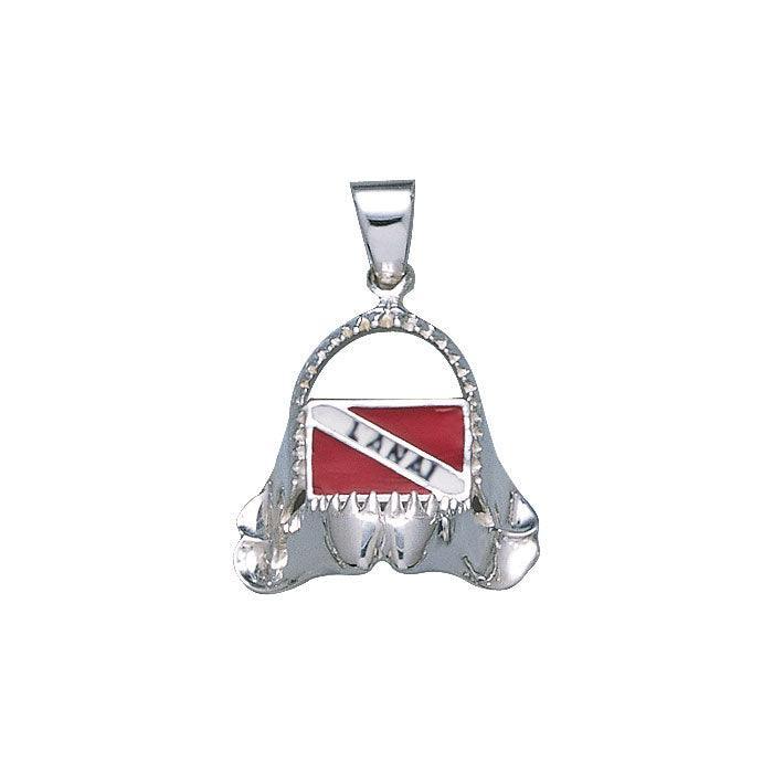 Shark Jaw with Dive Flag and Lanai Island Silver Pendant