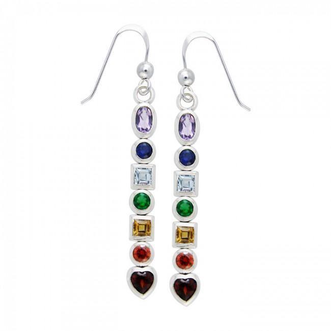Sterling Silver Chakra Earrings with Gemstones TER414