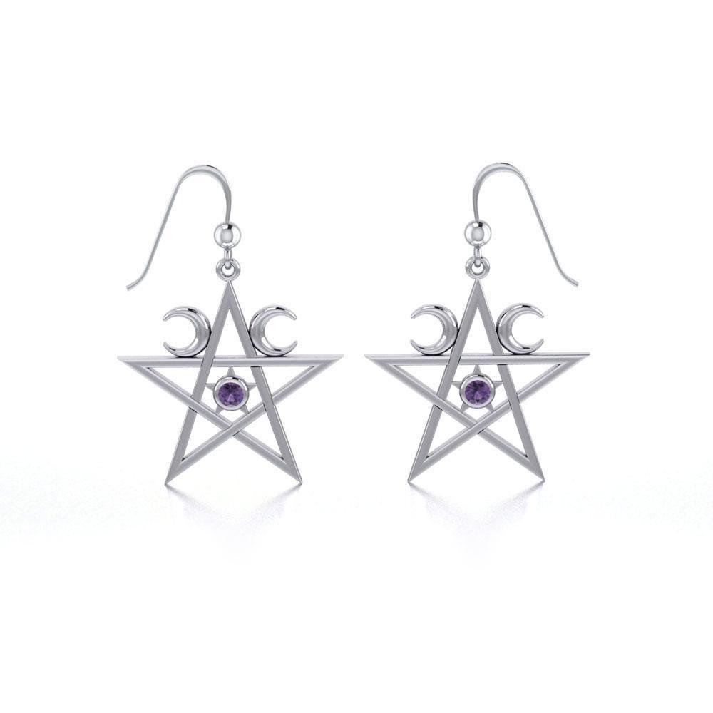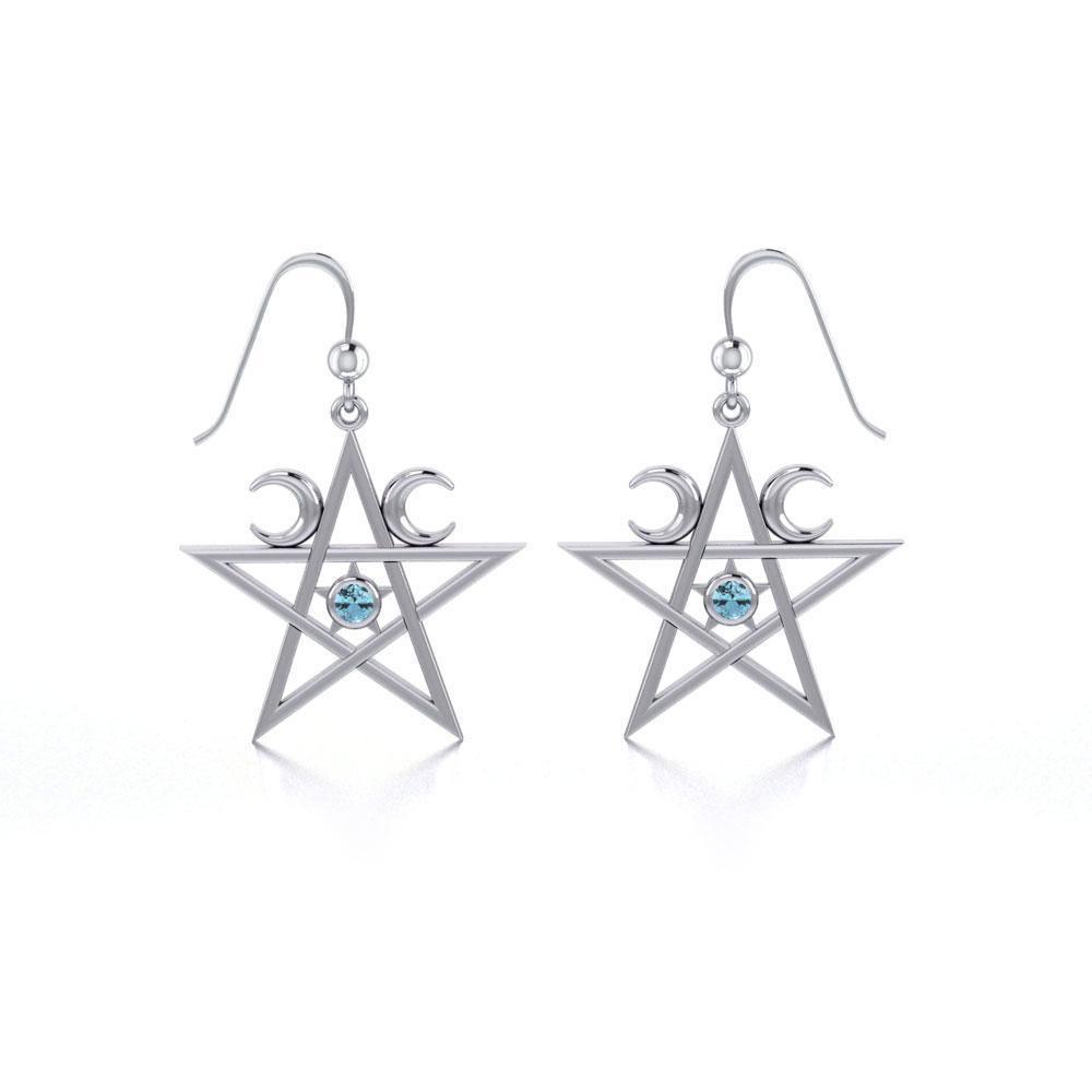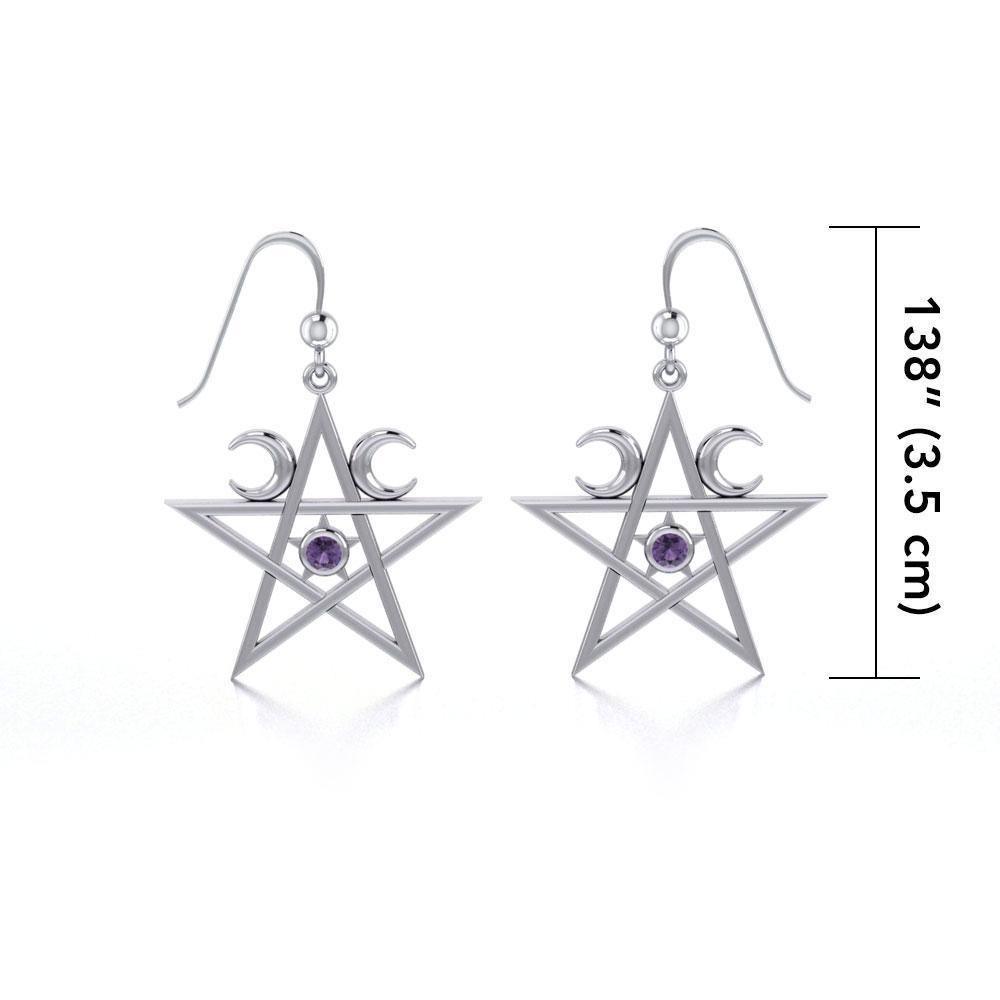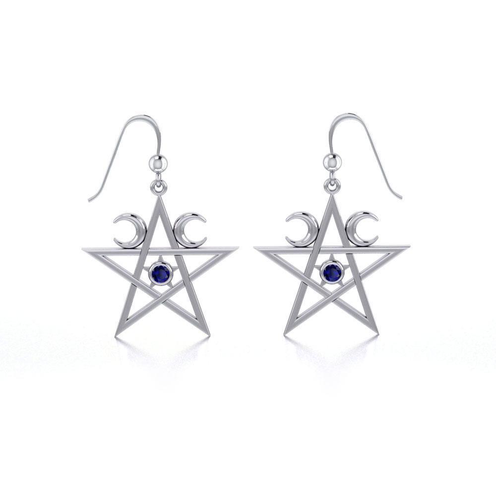 Pentagram & Crescent Moons Sterling Silver Earrings TE2875