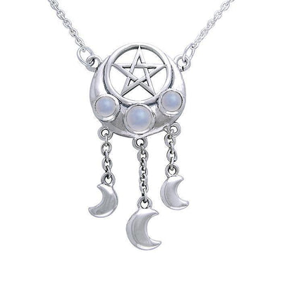 Crescent Moon And Pentacle Sterling Silver Necklace TNC004