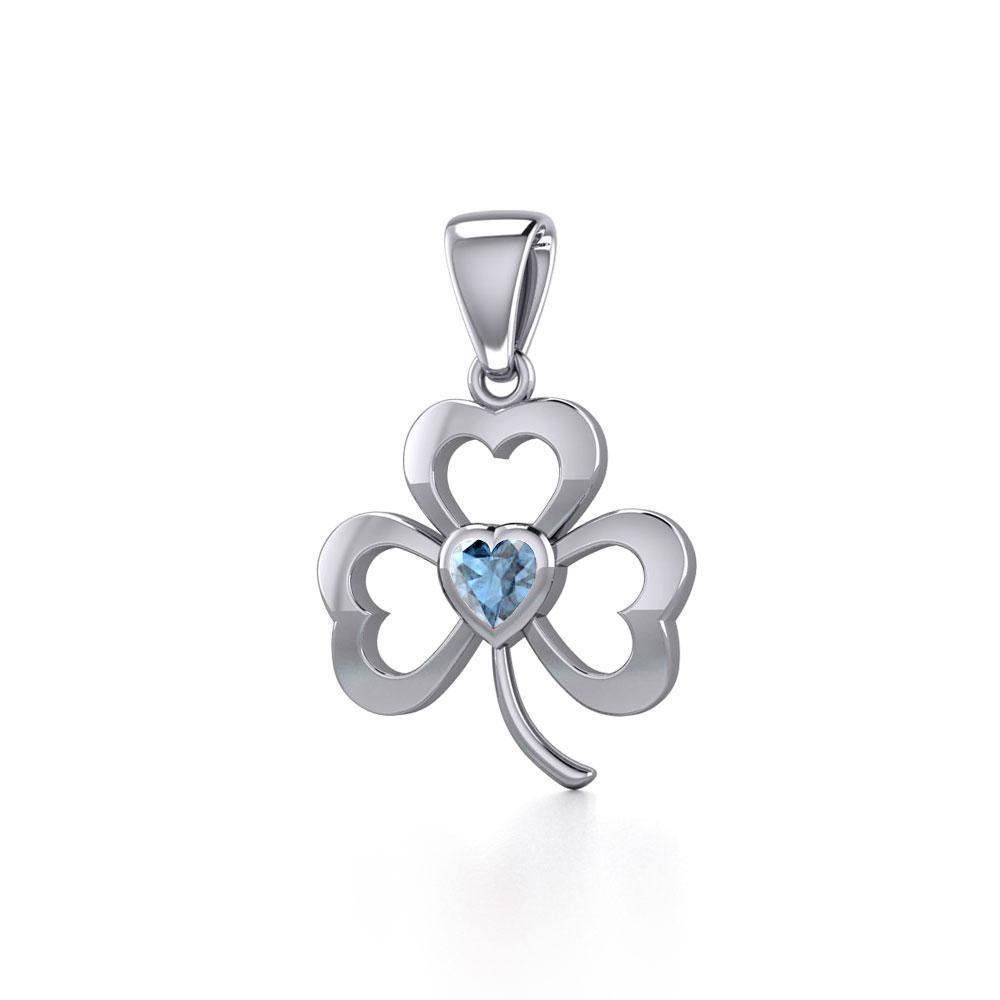 Silver Shamrock Pendant with Heart Gemstone TPD5338