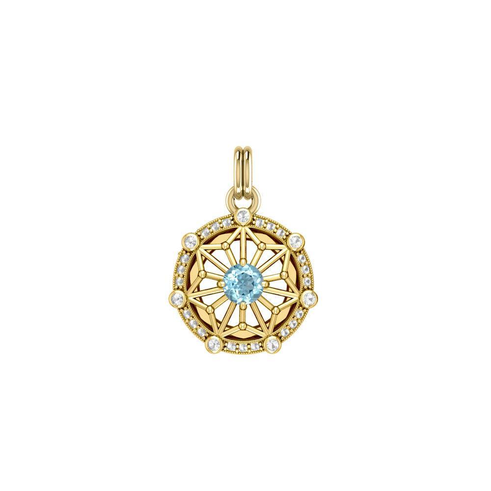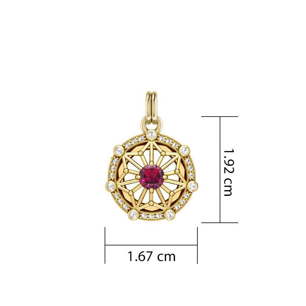 Small Round Tetragram Energy Symbol 14K Gold Vermeil Plate on Sterling Silver Pendant with Gemstone VPD5984