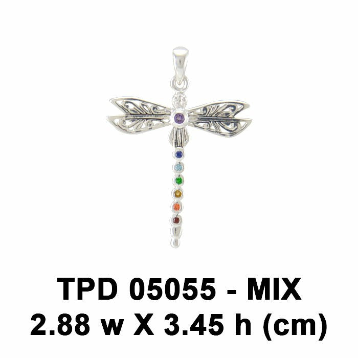 Spiritual Dragonfly Silver Pendant with Chakra Gems TPD5055