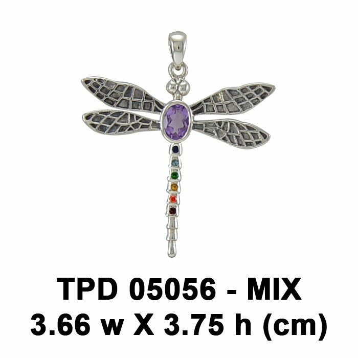 Spiritual Dragonfly Sterling Silver Pendant with Chakra Gemstone TPD5056