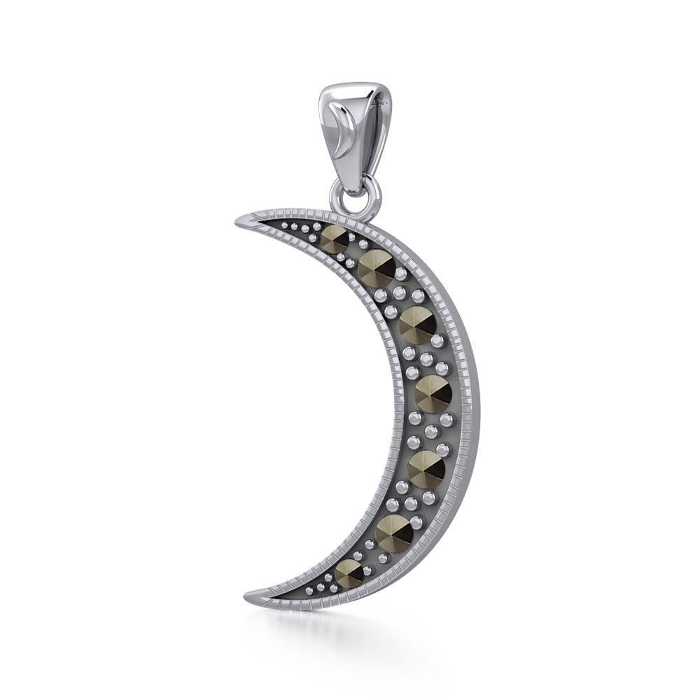 Sterling Silver Crescent Moon Pendant with Marcasite TPD5315