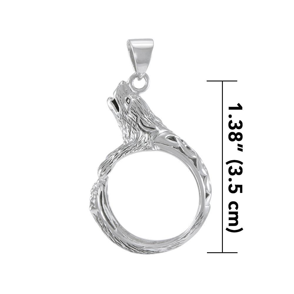 Sterling Silver Howling Celtic Wolf Pendant TPD4852