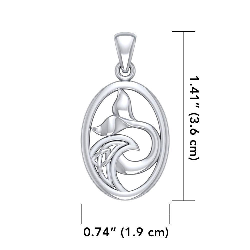 Sterling Silver Oval Whale Tail Pendant with Celtic Wave TPD5186