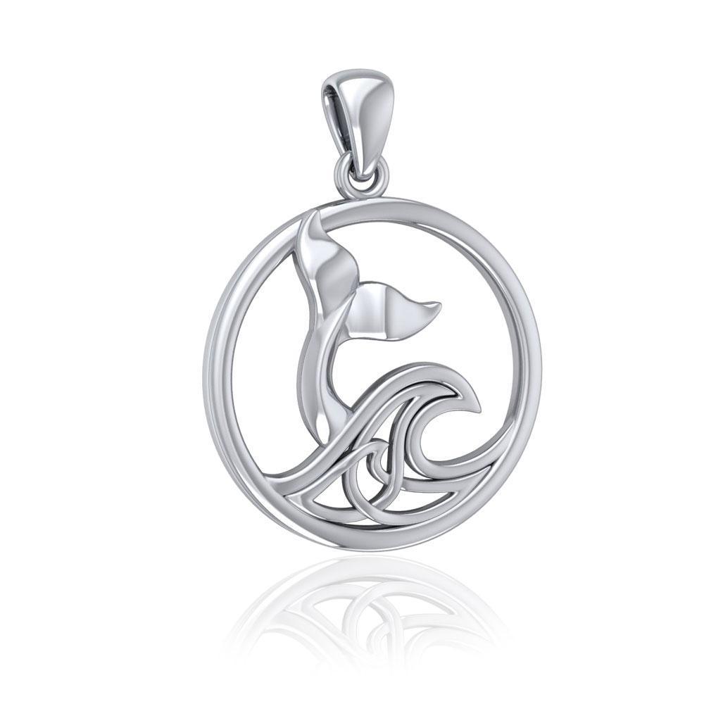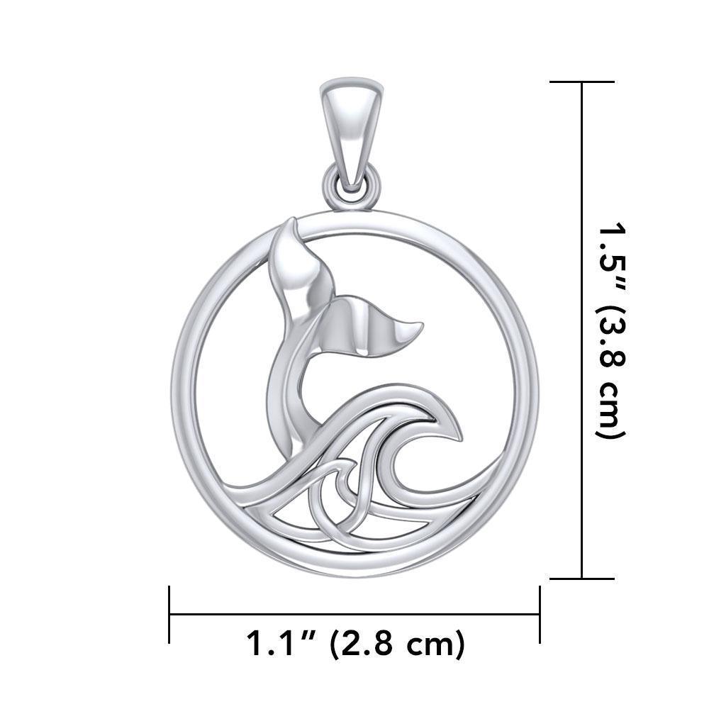 Sterling Silver Round Whale Tail Pendant with Celtic Wave TPD5187