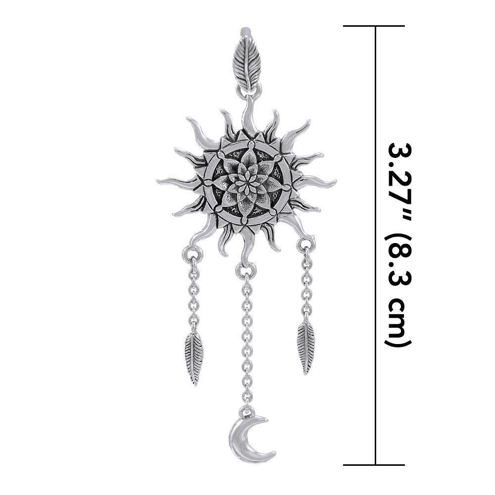 Glow like the Sun and the Moon in this sterling silver pendant of Peter Stone Jewelry. The sun the source of life and light to every living thing is a blazing fire of life which is held so much importance through ages. The Moon reflects the luminescence from the Sun. Its pale orb in the night sky has been hailed as a woman's ruminative nature and her inner response to the world. Beautifully designed in a perfect bloom, let this handcrafted piece shimmer and shine bringing rays of energy to your day.