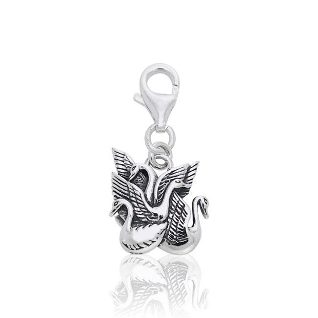 Irish legend tells of four siblings turned into swans by their jealous Stepmother and forced to spend 300 years on a lake near their Father's castle. This intricately crafted silver clip charm captures four swans with intricate details and celebrates the Irish legend of the Children of Lir.
