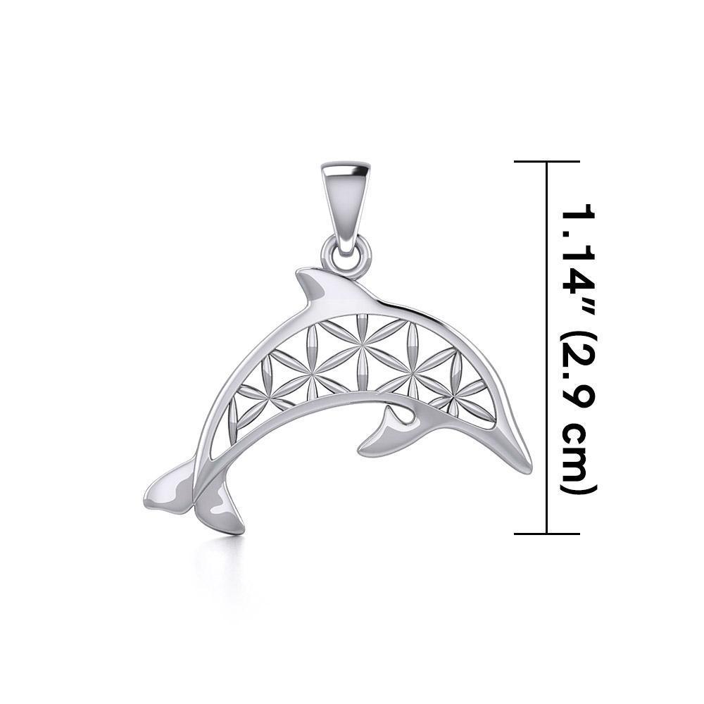 Swimming Dolphin with Flower of Life Silver Pendant TPD5272