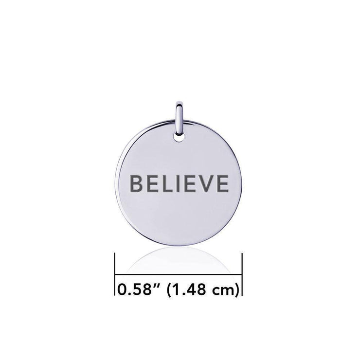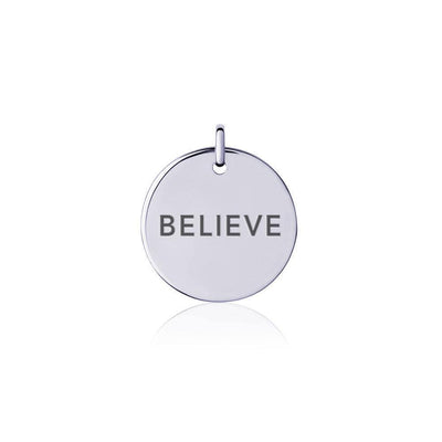 Meticulously crafted from fine sterling silver, the Power Word Believe Silver Disc Charm features a detailed inscription and hand crafted quality from the world class artisans at Peter Stone.