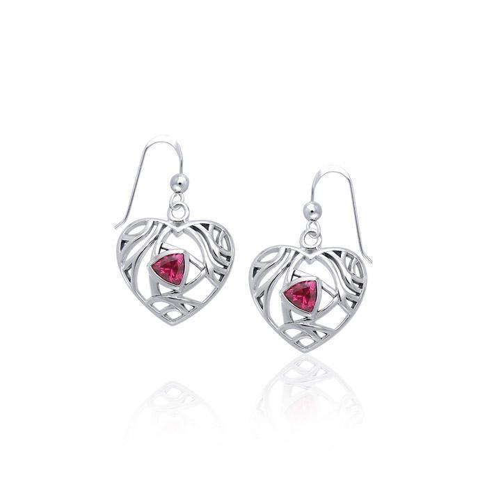 Elegant Heart Sterling Silver Earrings with Gemstone TER1183