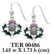 Celtic Alba Thistle ~ Sterling Silver Hook Earrings with Green and Purple Enamel TER486